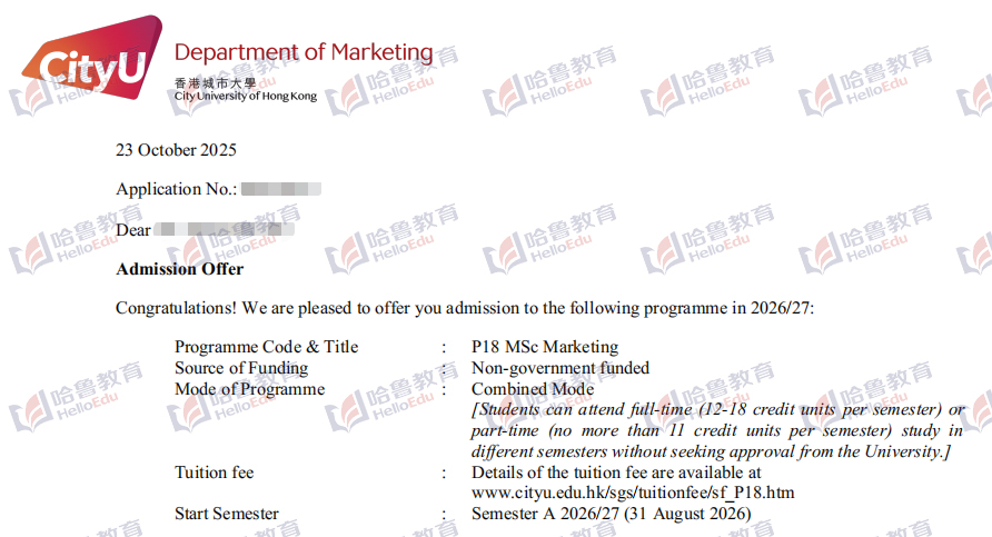 【哈鲁2026录取】GPA3.0+获香港城市大学市场营销硕士offer!