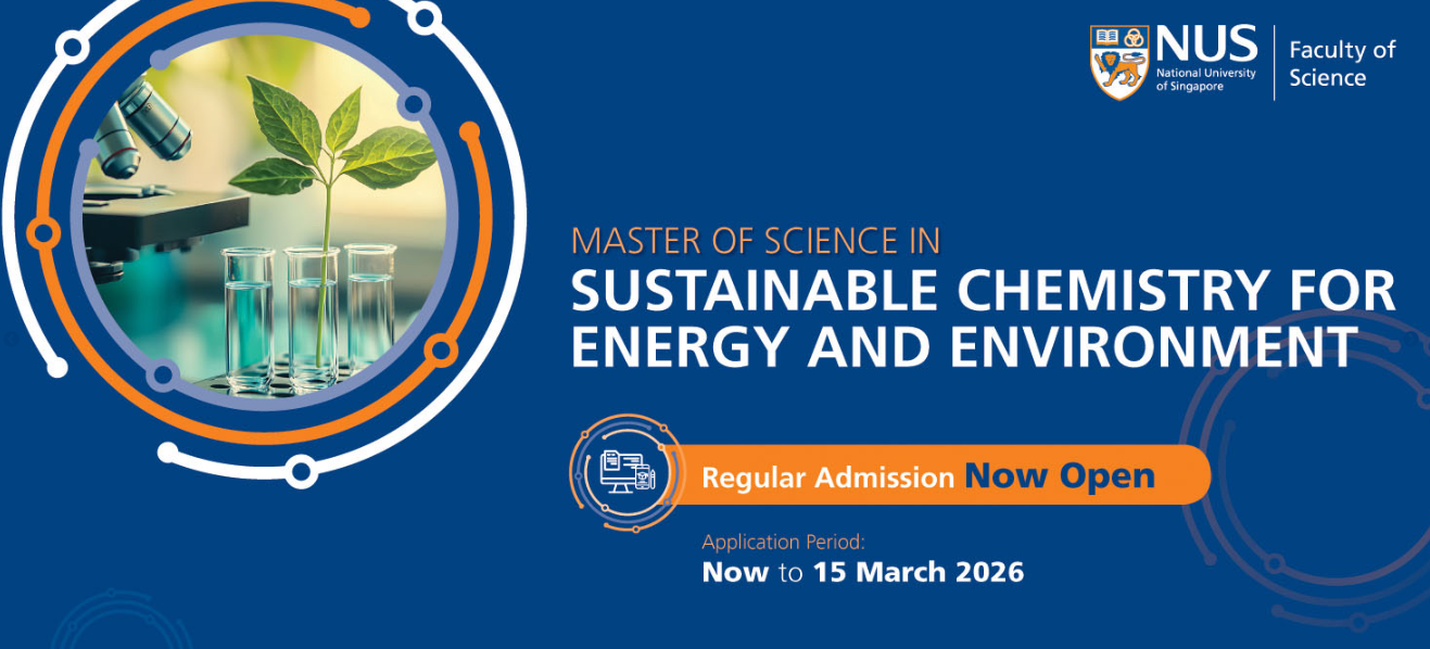近日,新加坡国立大学理学院的化学系官宣推出一个全新的专业——能源与环境可持续化学硕士(MSc in Sustainable Chemistry for Energy and Environment),2026年8月为首届入学,目前已开放申请!感兴趣的同学,赶紧冲啊~