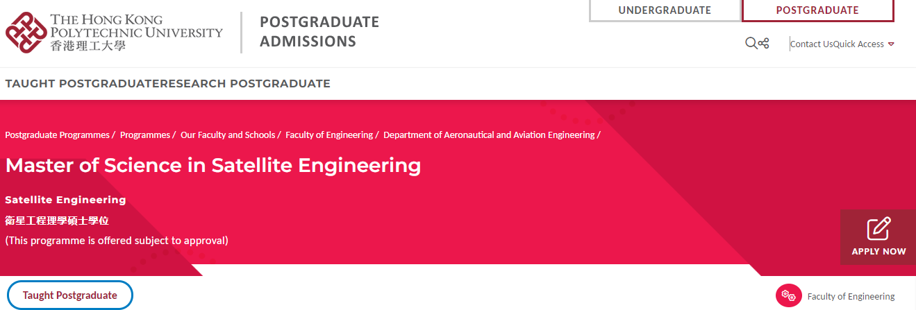 近日,最近香港理工大学又放大招啦!新增了两个超热门的理学硕士专业——卫星工程硕士(Master of Science in Satellite Engineering)和网络空间安全硕士(Master of Science in Cybersecurity),都是未来科技发展的核心方向!下面,我们一起来看看~
