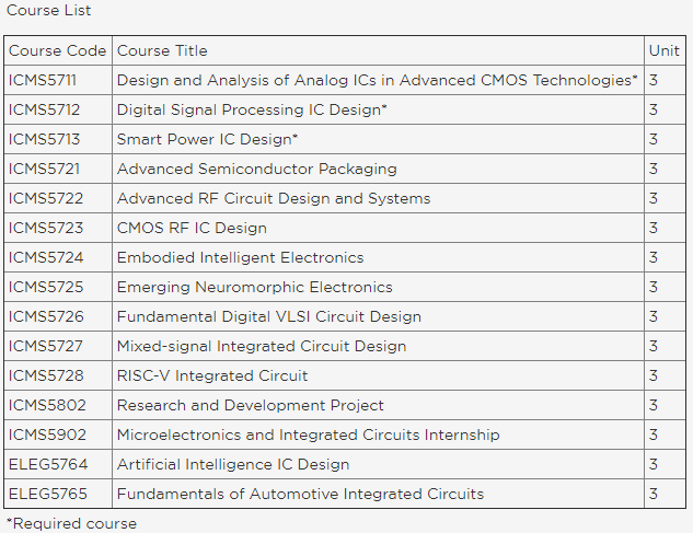 同学们请注意!香港中文大学26fall又双叒叕增新专业——微电子与集成电路理学硕士(Master of Science Programme in Microelectronics and Integrated Circuits)!而在不久前,香港大学才官宣新增集成电路与电子系统硕士(Master of Science in Engineering (Integrated Circuits and Electronic Systems))。看到这两个专业可太有意思了,港中大这是要跟港大“抢”生源吗?下面,我们一起来看看港中大这个专业的一些信息~