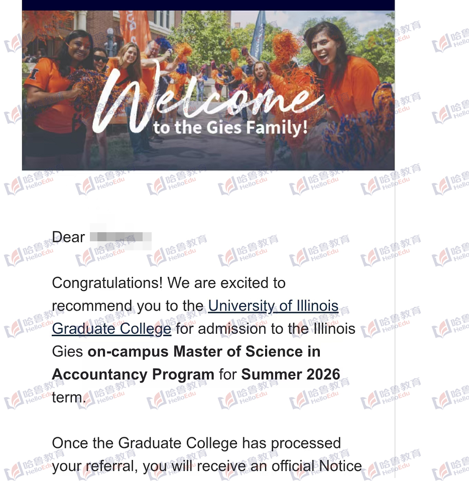 【哈鲁2026录取】全美会计专排Top3 offer!伊利诺伊香槟分校硕士录取来了!