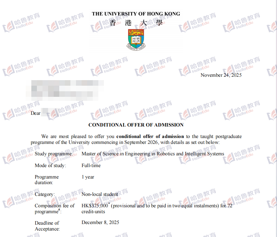 【哈鲁2026录取】港大offer+2!机器人与智能系统硕士&语言学硕士录取到!