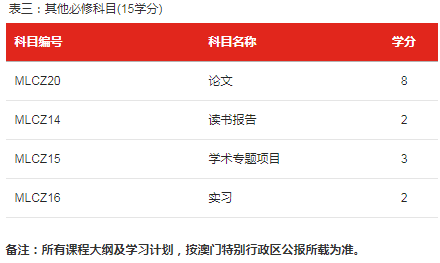 3.如学生及格完成上述课程设置表一至表三的科目(论文除外),累计平均积点不低于2.50,但不在规定时间内通过论文答辩,则只可取得结业证书。