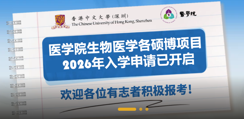 博士招生!港中深医学院博士项目开放26fall申请!