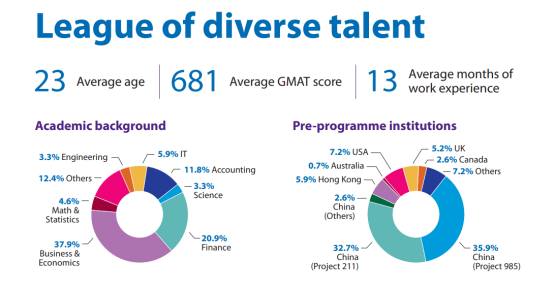 虽然不限制学生的背景,但从录取的结果来看,相关专业背景更占优势:会计专业背景的学生占比58%,另外37%来自其他商科专业,其他专业的同学仅占5%。