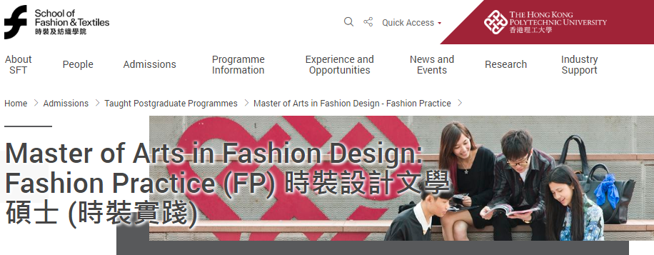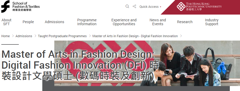 近日,香港理工大学再次官宣在26fall新增两门时尚设计类硕士专业,一个聚焦在服装设计的商业化,另一个则聚焦服装设计的数字化转型!这两门课程分别是:时装设计文学硕士-时装实践(Master of Arts in Fashion Design: Fashion Practice (FP))和时装设计文学硕士-数码时装及创新(Master of Arts in Fashion Design: Digital Fashion Innovation (DFI)),都是一年制全日制。