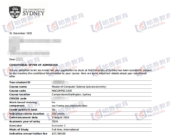【哈鲁2026录取】悉尼大学计算机科学硕士offer到!