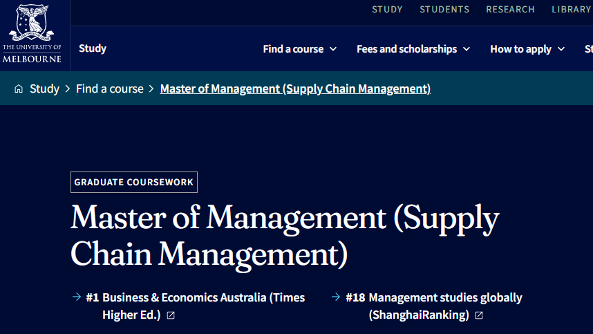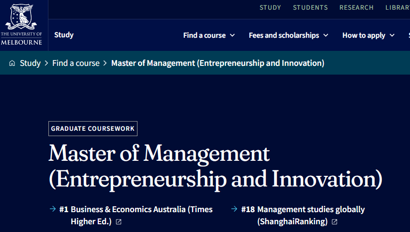 墨尔本大学(The University of Melbourne)始建于1853年,是一所著名的公立研究型大学,。大学在2026年QS世界大学排名中位列世界第19,澳大利亚第1!随着26fall申请季启动,该大学热门管理学硕士也增设了两大前沿专业方向,分别是Master of Management -Supply Chain Management(管理学硕士-供应链管理)和Master of Management (Entrepreneurship and Innovation)(管理学硕士-创业创新)!下面,我们一起来看看~