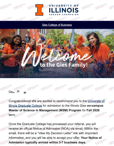 【哈鲁2026录取】GPA80获伊利诺伊香槟分校(UIUC)管理学硕士offer!