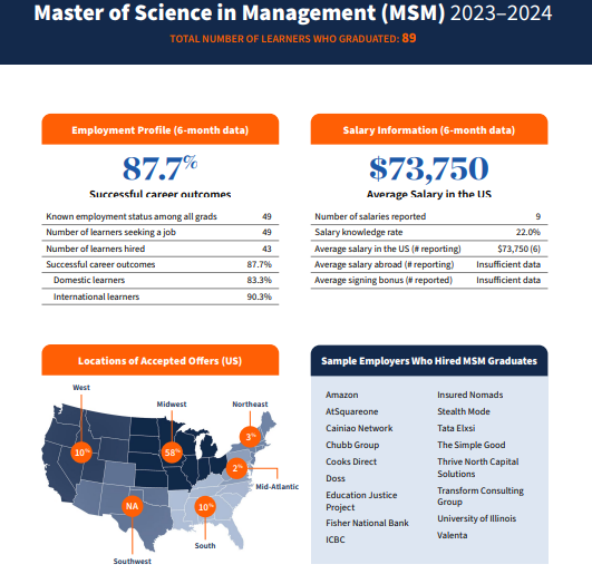 UIUC的管理学硕士是一项为期9个月的STEM课程,旨在学生你提供适销对路的技能和经验,有着为学生做好准备的良好记录成功的职业成果。该项目的建立在本科教育的基础上,专为商业以外的本科学位学习者设计的课程。通过精心设计的、以实践学习为导向的课程,助学生开启成功的职业生涯。学生将通过基于客户的项目来解决实际的商业问题,同时学习核心的商业知识,以提升技能水平。