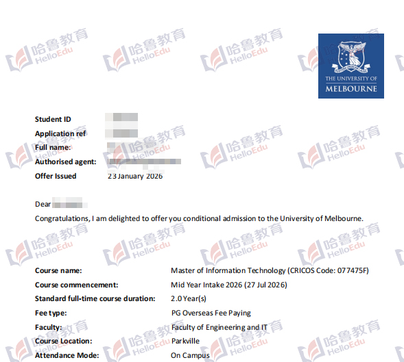 【哈鲁2026录取】墨尔本大学信息技术硕士offer到!