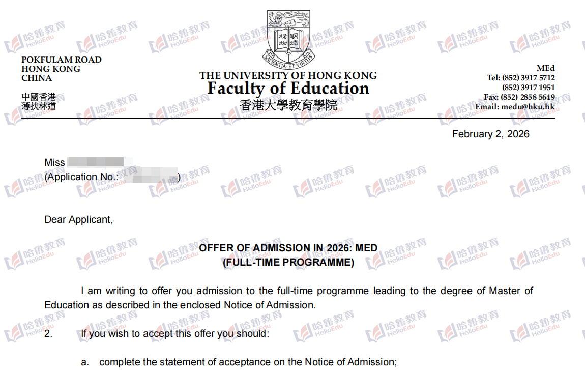 【哈鲁2026录取】香港大学教育学硕士offer到!