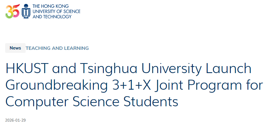 近日,香港科技大学计算机科学与工程系和清华大学(Tsinghua)计算机科学与技术系宣布启动一项开创性的“3+1+X”联合本科-研究生培训项目,该项目将于2026/27学年开始。