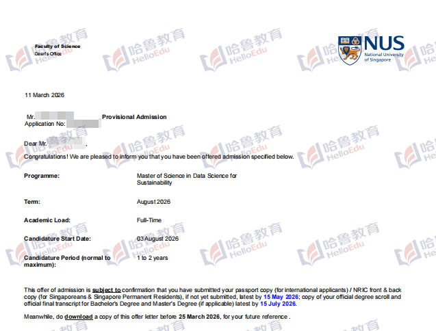 【哈鲁2026录取】新国立可持续发展数据科学硕士offer到!