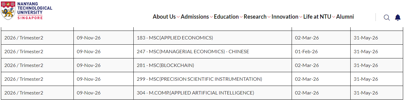 考研结束后留学?NTU 26年11月入学硕士项目开申,5月31日截止!
